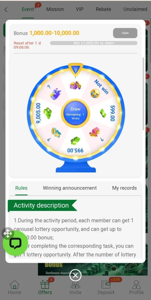 Many types of games are available in this platform some of them are lucky wheel, roulette, keno, crush, mines dragon tiger, fight and many more.