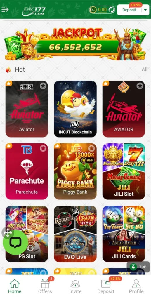 PK 177 Game contain collaborations of many casino games so you can play any of your favorite game through this feature. By using this beautiful opportunity you can choose any of your favorite game without any navigation or difficulty it has a unique collection of games based on demand or local bitters in Pakistan. So you have a chance to get the traditional games in a modern style by choosing them just from a single app.