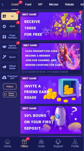 Moreover, 8Bet Game also gives a chance for players to earn money from inviting a friend. If we will invite a friend on this game, the game will give us above Rs.500 rupees. And many more features.That’s why this game become one of the most trending and popular game all over the Pakistan.