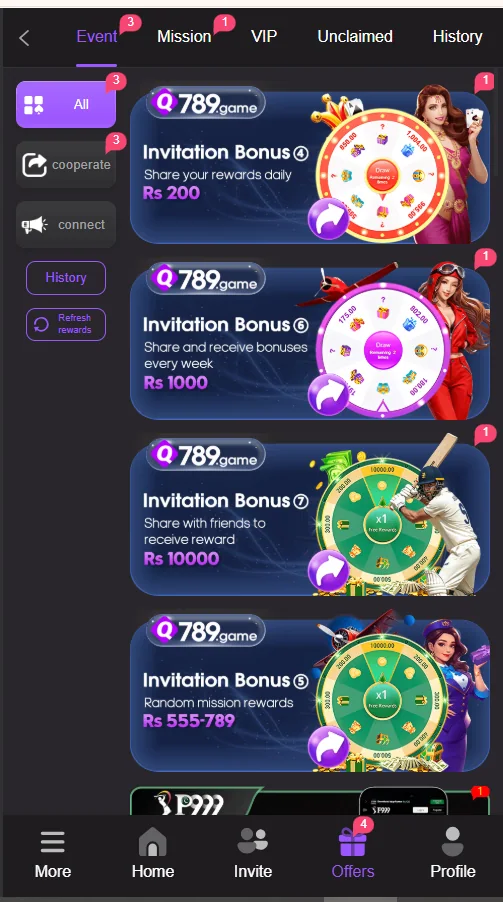Q789 Game provides daily rewards to the loyal player who daily login to their account it also offers referral bonus through which you can invite your family and friend to this platform through referral link and get extra Commission. Another interesting feature of this game is that it provided safe and secure gaming environment in which you do not need any fairness and fraud for the withdrawal and deposit method.